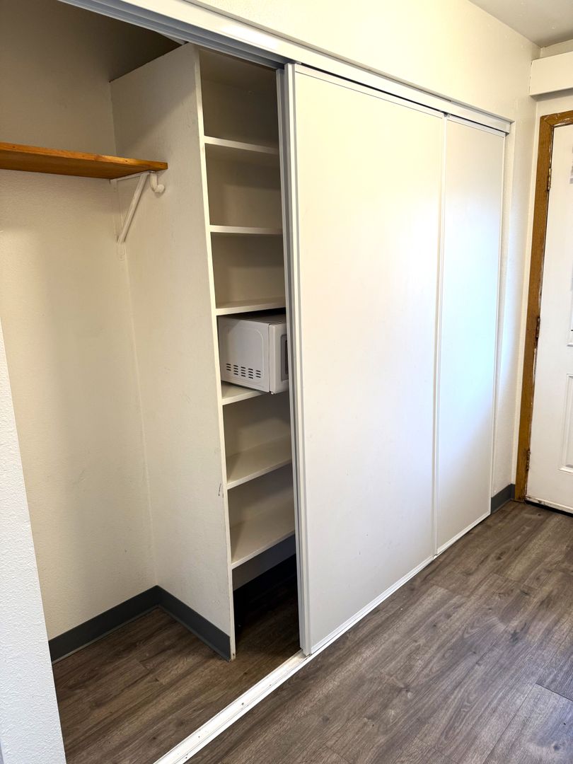 - Spacious studio layout with excellent closet space